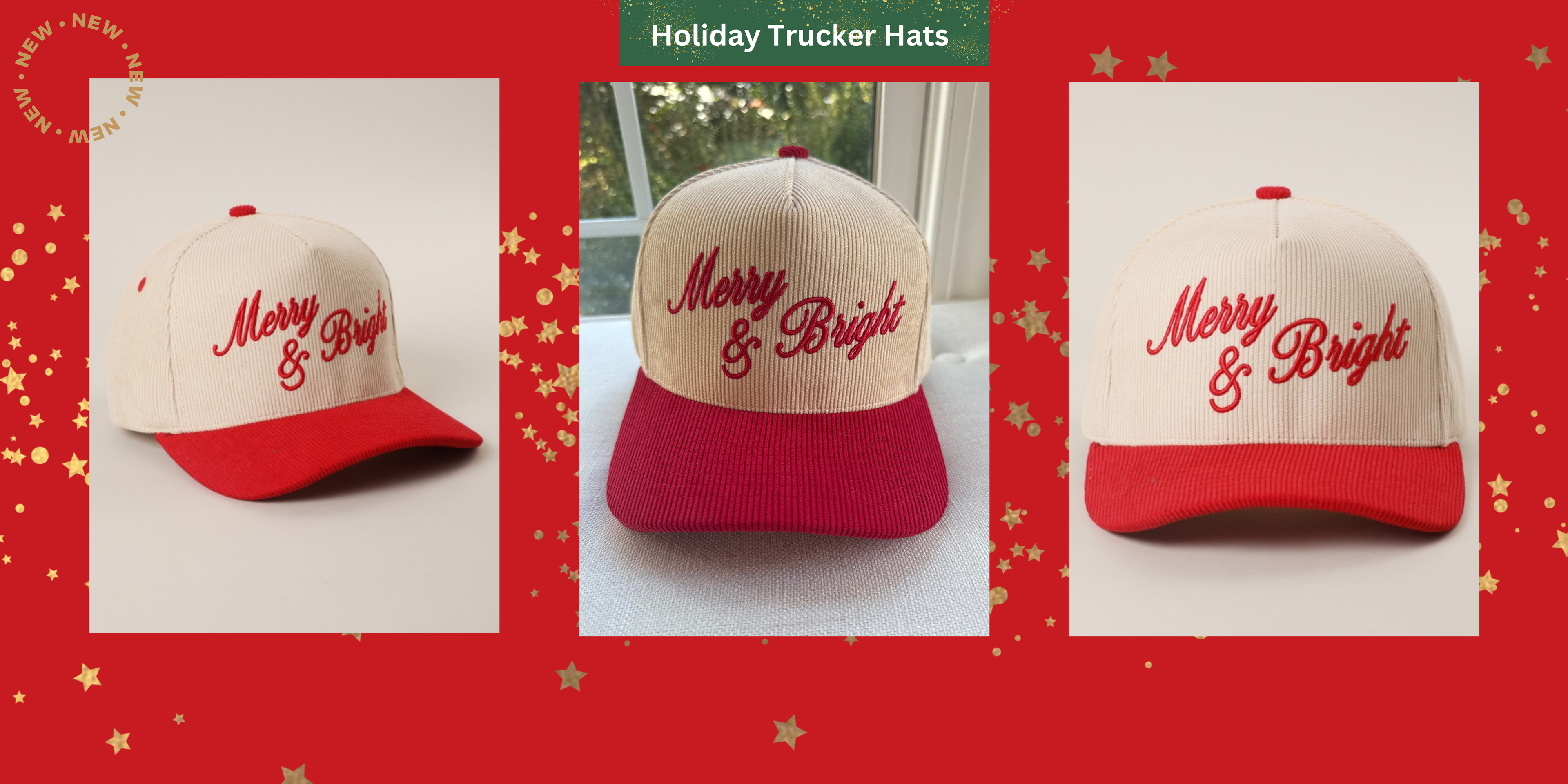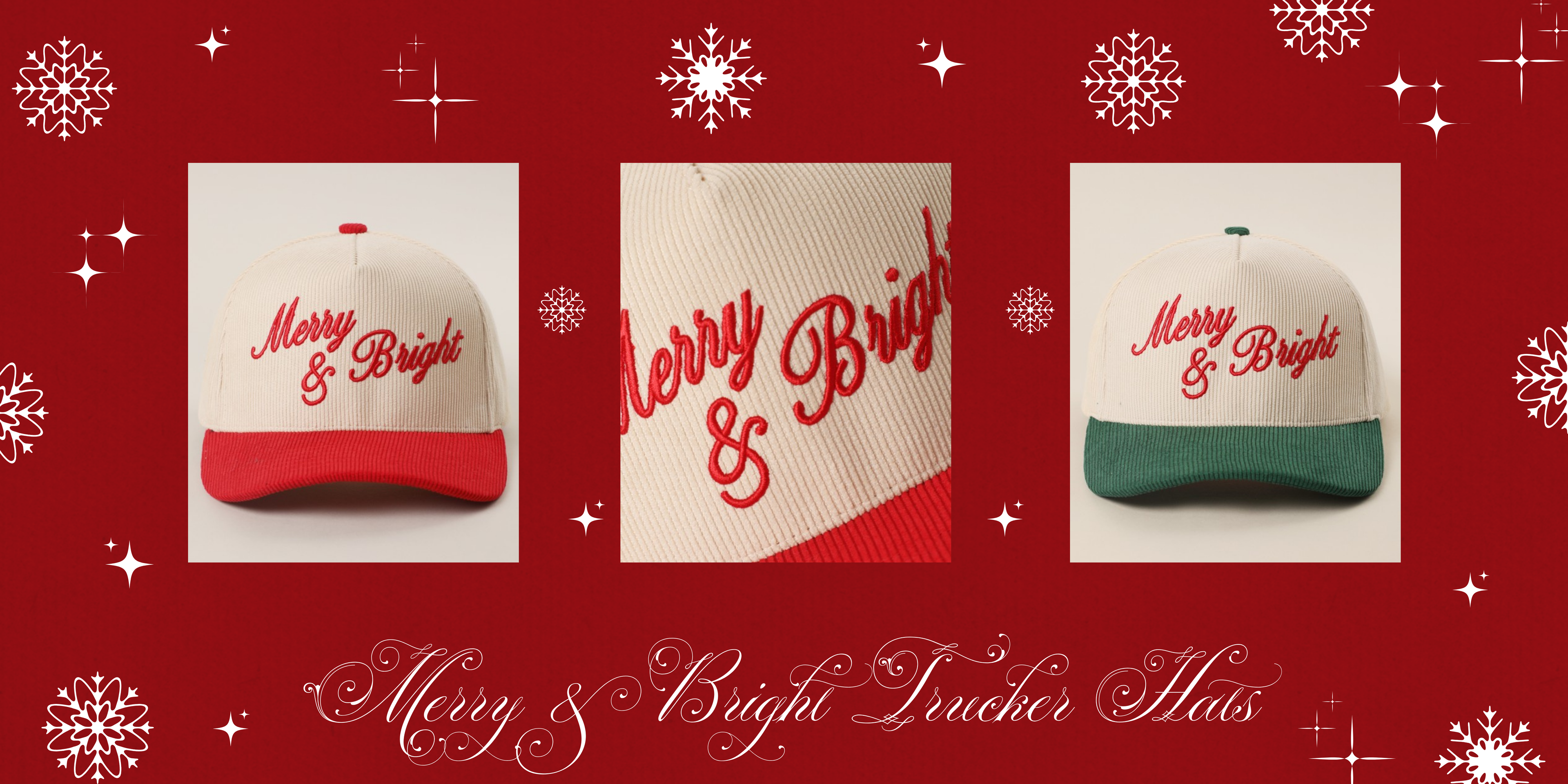 Merry & Bright Embroidered Two-Tone Corduroy Trucker Hat Christmas
