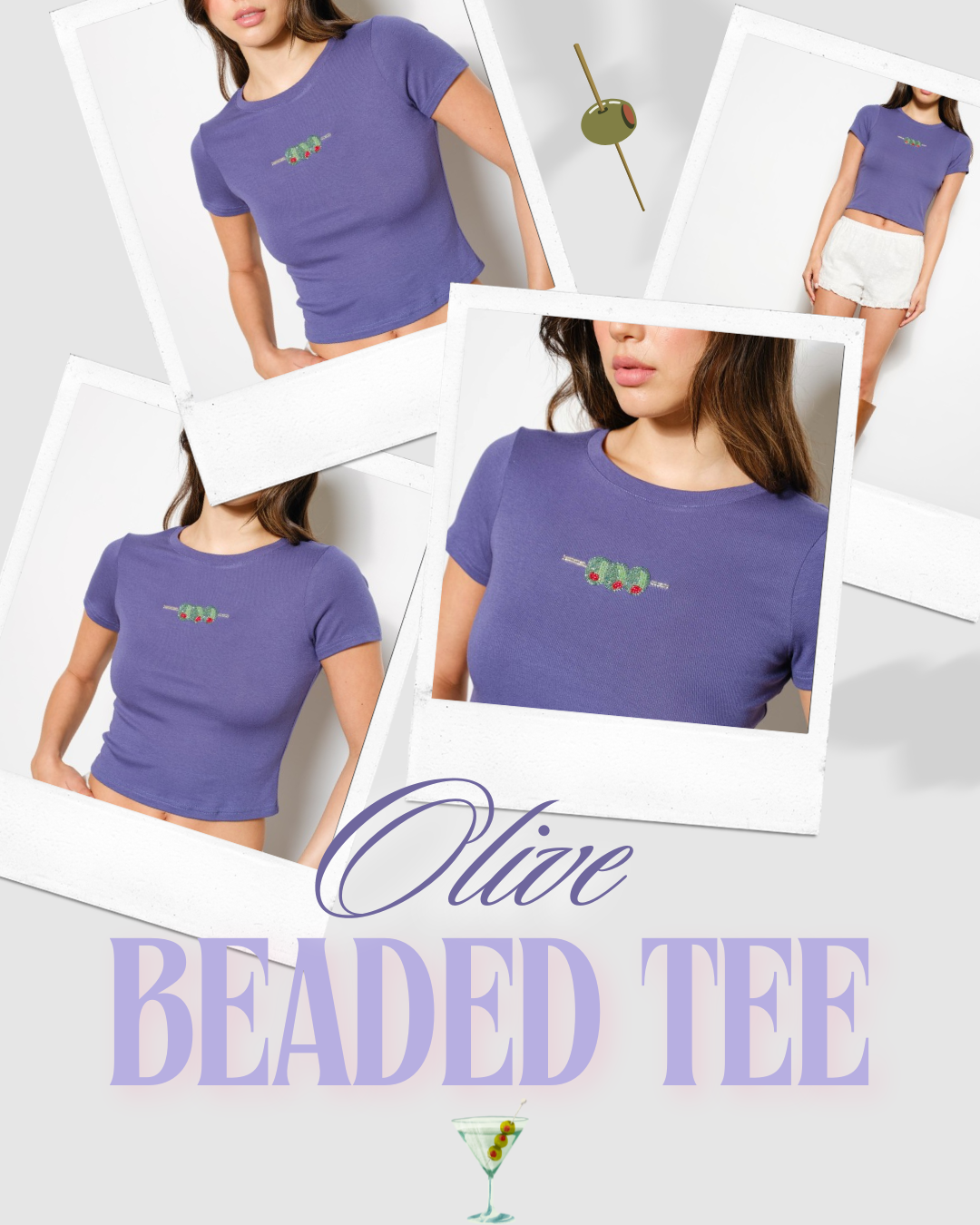 Olive Beaded Tee Periwinkle