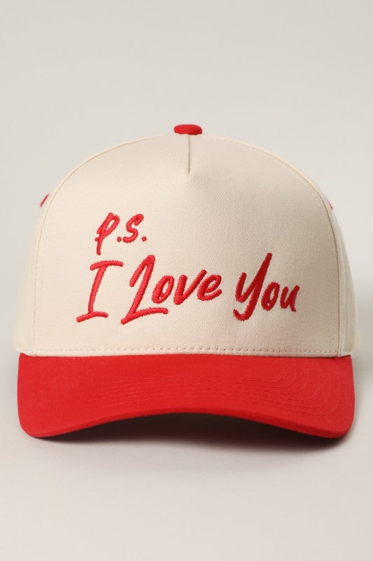 P.S. I Love You Two-Tone Embroidered Trucker Hat Red